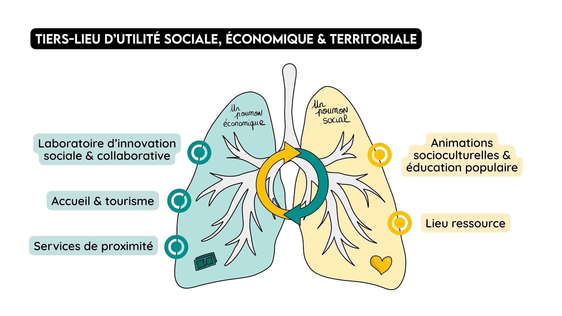 Le lieu pratique un accueil inconditionnel, valorise l’initiative citoyenne et favorise les coopérations économiques & sociales à l’échelle du territoire.